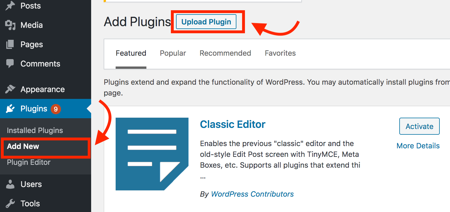 You can install Wordpress Plugin by two methods: Upload via WordPress Admin or Upload via FTP