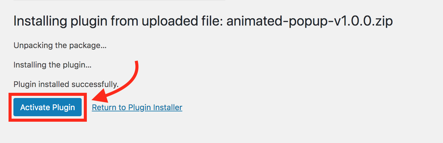 Once installed, you need to click on the Activate Plugin link to start using the plugin.